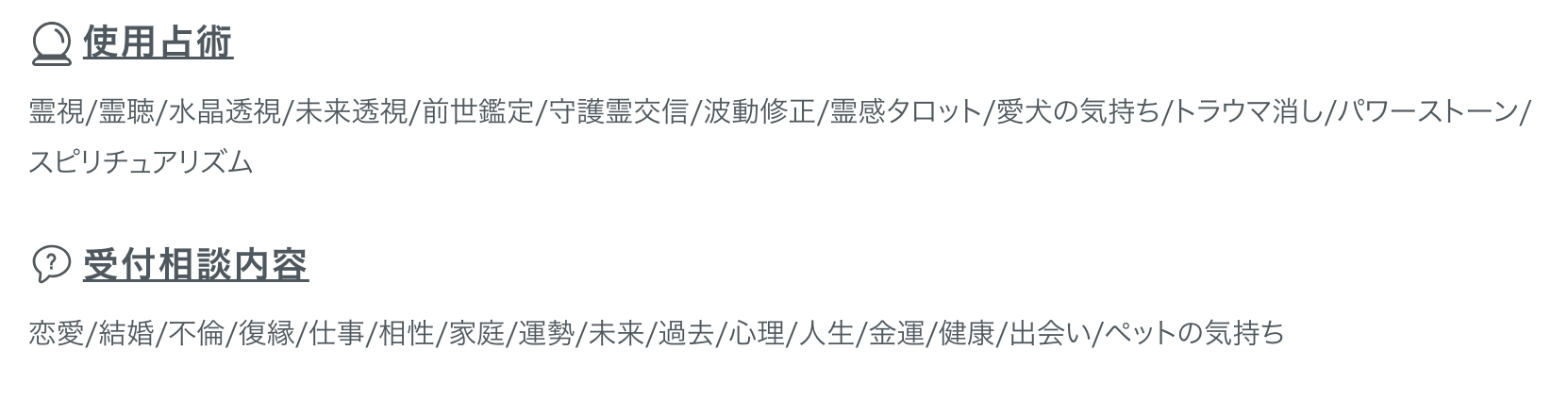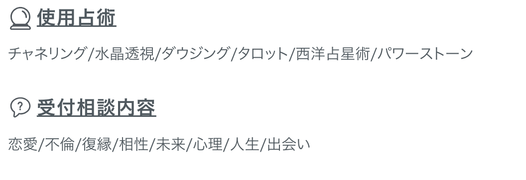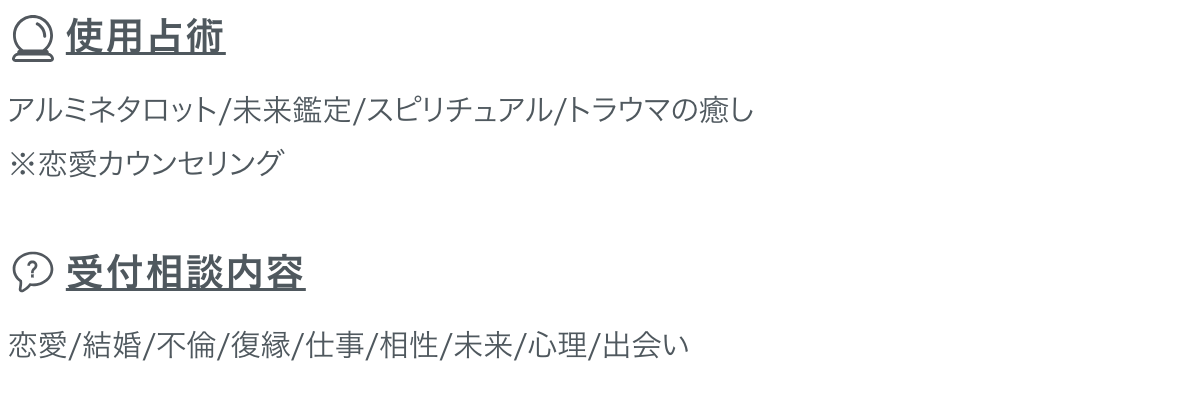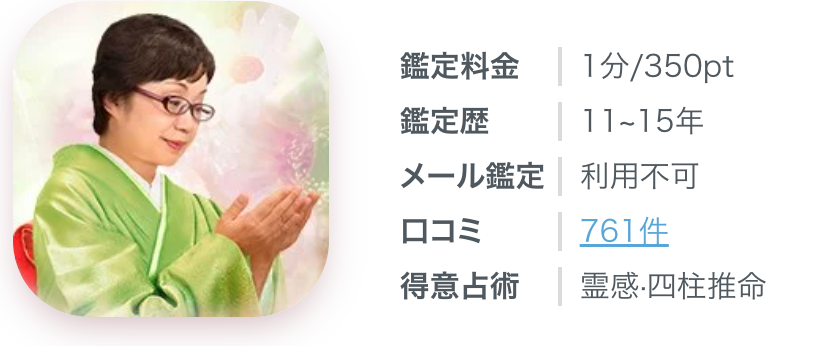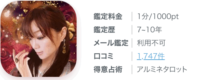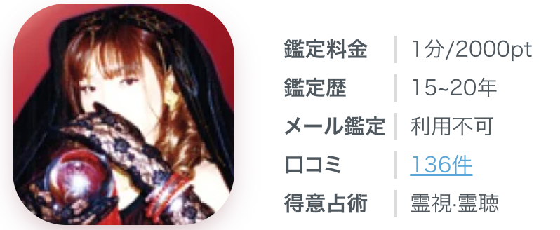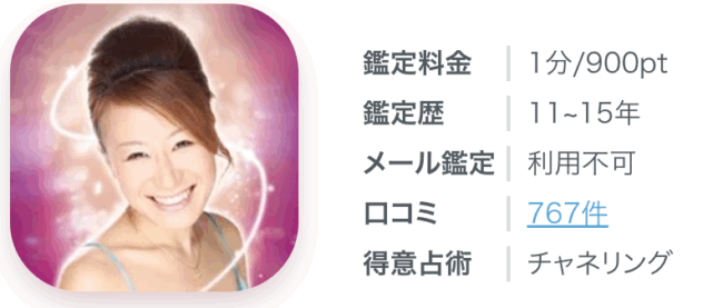 個人的にはじっくりめの鑑定の方が好みなので、ちょっと合わなかったかもです…。ただ、すごく当たってたしコストパフォーマンスはラインキングの上位の人達の中で一番かも