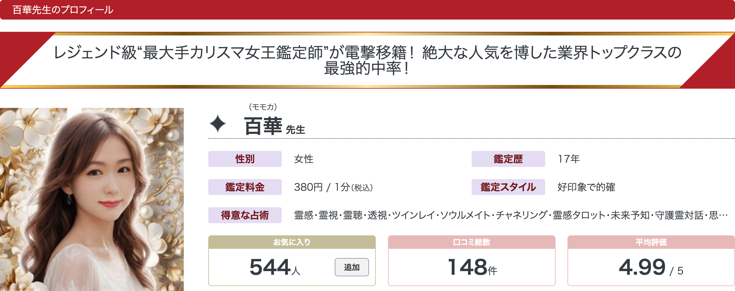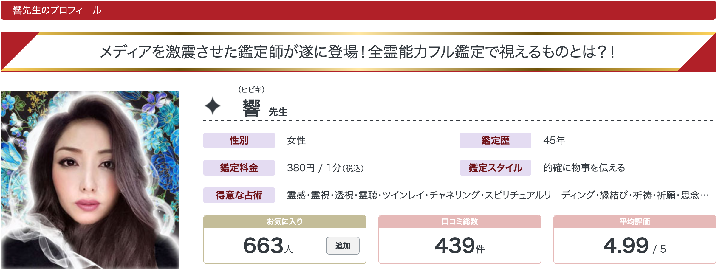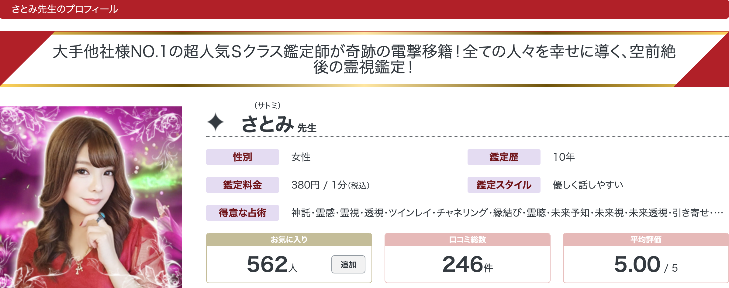 鑑定師 | 鑑定歴 | 料金/1分 |