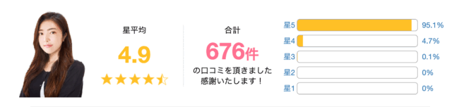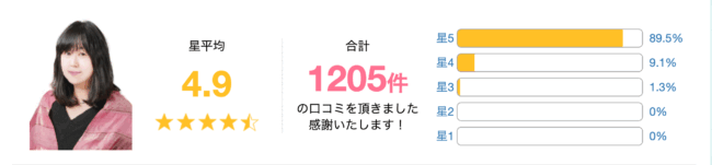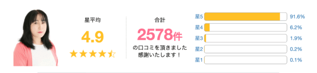 サイトの口コミも総合評価が4.9と高評価。低評価がなく、ウラスピ内にも低評価はありませんでした。