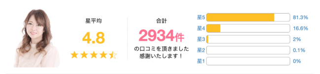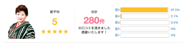 電話占い「絆」では、先生の口コミ評価を5段階で確認することが可能です。