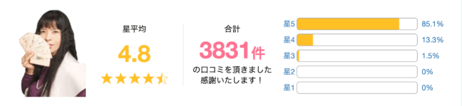 占いは当たる時もあれば、外れる時もあるのが当たり前なので、自分の好きな先生の低評価を聞きたくないと思う人は、真に受けず、その辺りは参考程度にご覧になる方が良いのかもしれません。