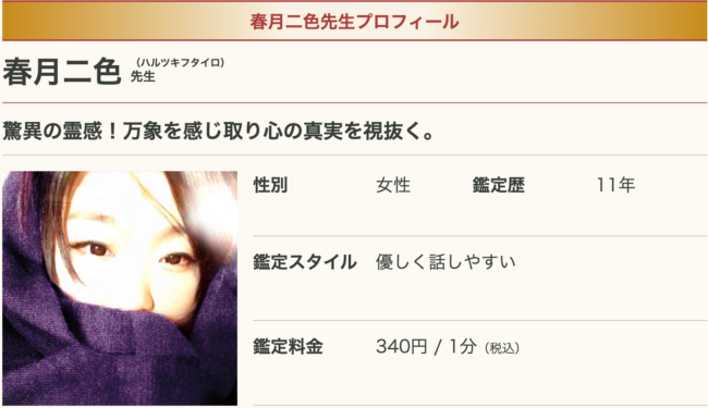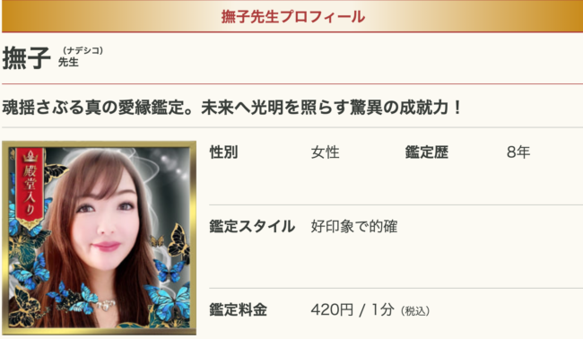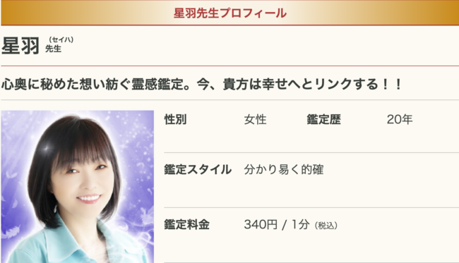 今まで電話鑑定でお世話になった先生方の中で一番、彼のことや私のことが当てはまり、とても驚きました。
