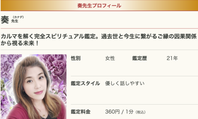 すごく霊能力が高い先生です。相手のことを深く知ることができ、今後の行動もアドバイスいただけました。