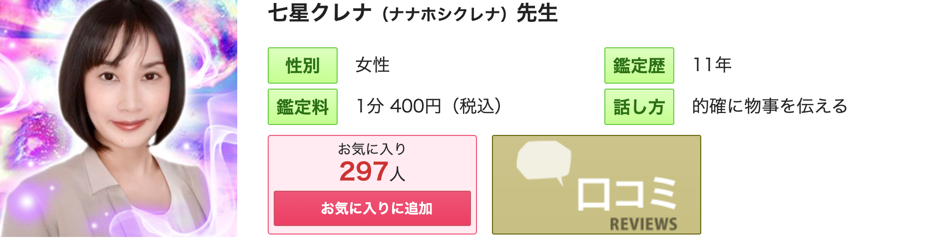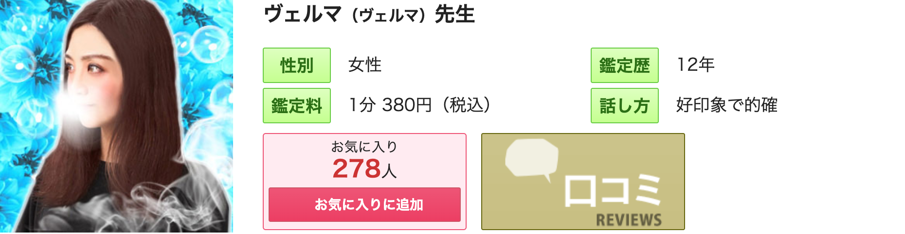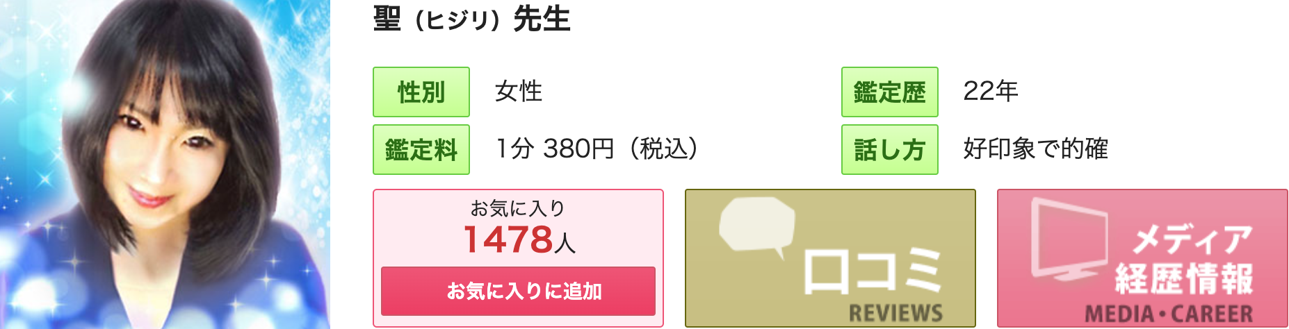 | 占い師 | 1分あたりの鑑定料 | 鑑定歴 |