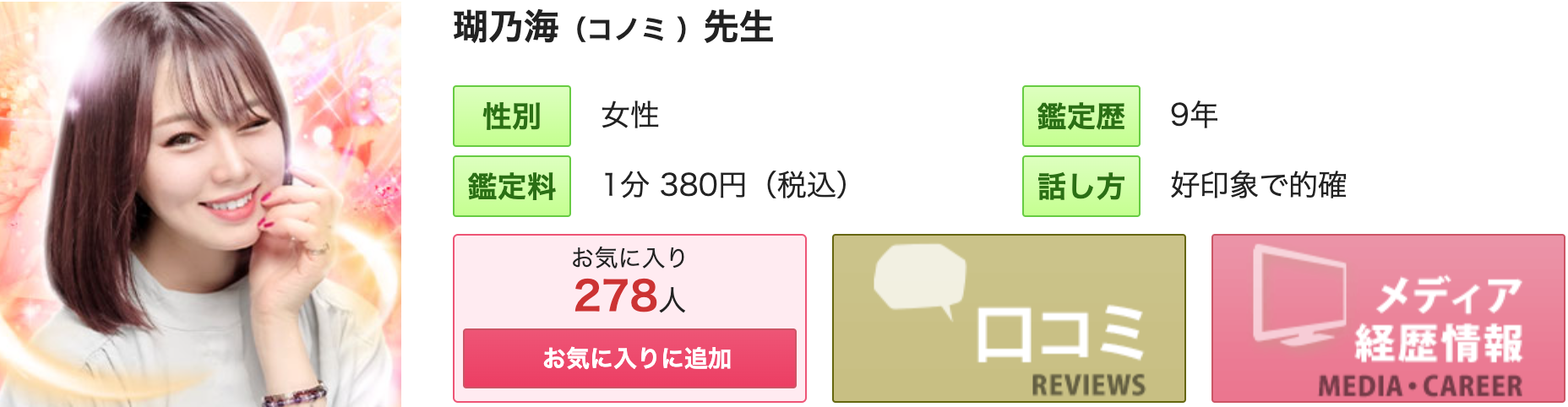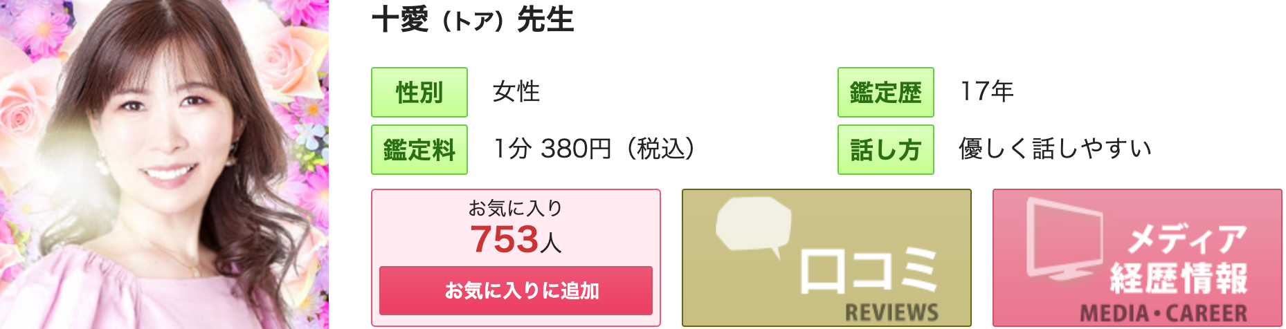 初回利用の特典も10,000円以上の無料鑑定がついているので、初めての方でも自分に合った先生を見つけやすく、リピーターが多いことでも有名です。