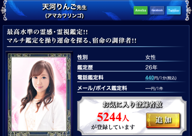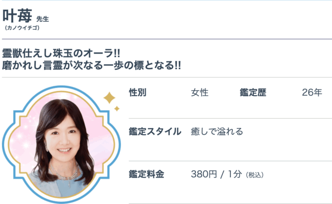 鑑定師 | 鑑定歴 | 料金/1分 |
