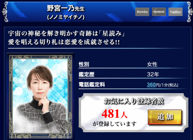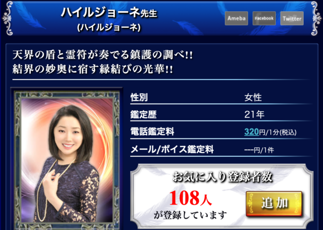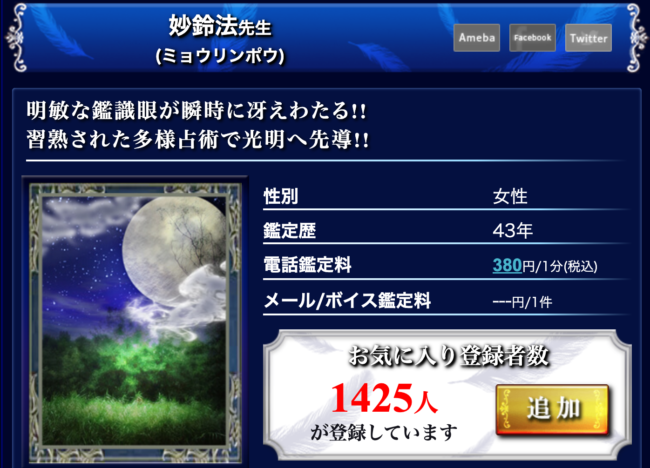 他のサイトと比べて料金設定はさほど高額ではありませんが、やはり人気の先生の鑑定料は1分440円と高めです。