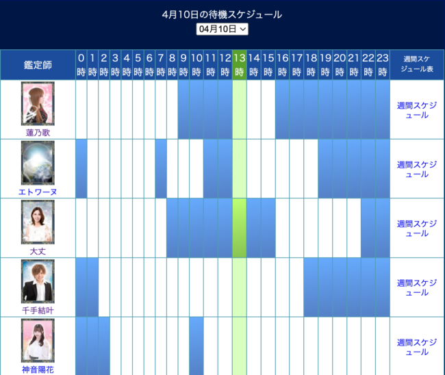 | 占い師 | 1分あたりの鑑定料 | 鑑定歴 |